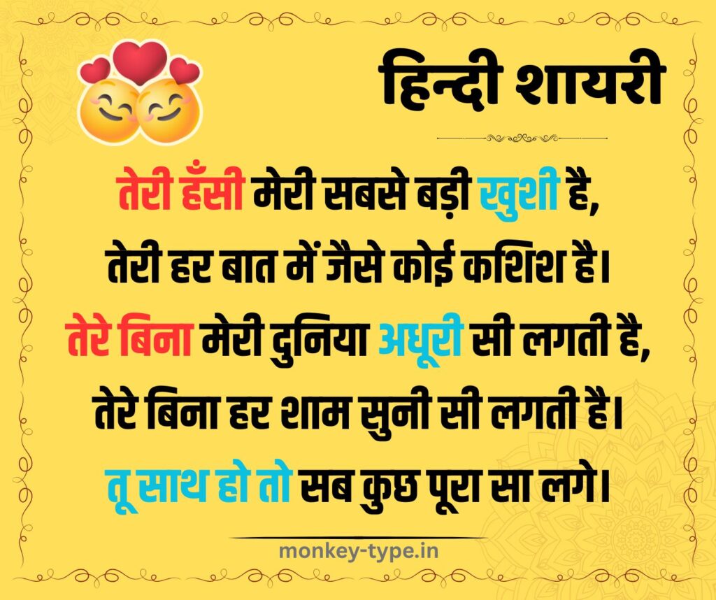 शायरी सिर्फ़ शब्दों का मेल नहीं, बल्कि दिल से निकली भावनाओं की अभिव्यक्ति होती है। चाहे वो प्यार हो, दर्द हो, दोस्ती हो या मोटिवेशन — हर जज़्बात को शायरी के माध्यम से बेहतर तरीके से महसूस किया जा सकता है। इस पेज पर दी गई सरल और दिल को छूने वाली हिंदी शायरियाँ आपको और आपके अपनों को ज़रूर पसंद आएंगी।